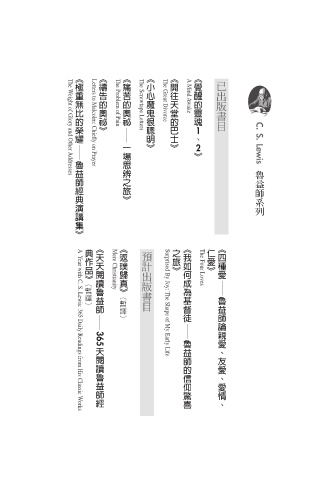 紀最有影響力的基督教著作,魯益師有三部作品入選百大,是入榜者中 刊︾以封面故事處理。這樣的規格,許多諾貝爾獎得主都沒有享受過。 書系總序 The Problem of Pain The Screwtape Letters The Great Divorce A Mind Awake