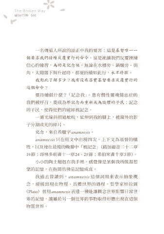 要持續做什麼?「記念我」。患有慢性靈魂健忘症的