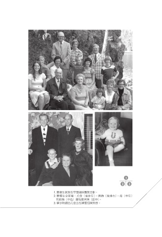 Ch 2 ͎ፋjԟԬ̆˂ٙ˴˚ 023 1 2 3 1. 畢德生家族在平頭湖畔團聚合影。 2. 畢德生全家福:尤金(後排左),唐納(後排右),肯(中左) 和凱倫(中右)還有愛芙琳(前中)。 3. 學步時期的尤金正在練習招牌笑容。 ࣧ Ò " ˼݊ଭᅃ͛ Q @3 ࣧQS JOEE ɪʹ 2024/9/16 下午4:50 照片頁.indd 2