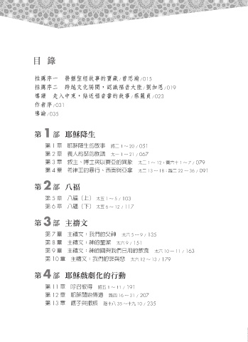 第 4 章 希律王的暴行、西面與亞拿 太二 13 ∼ 18;路二 22 ∼ 36 / 091 第 21 章 比喻導讀/ 369