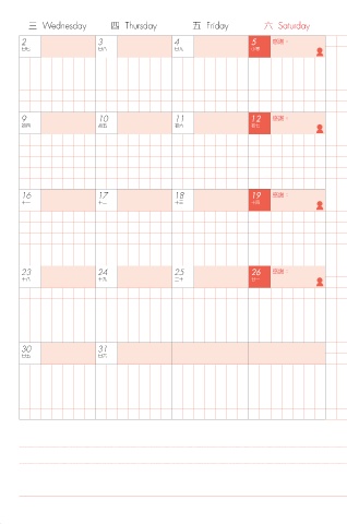 日 Sunday 一 Monday 二 Tuesday 三 Wednesday 四 Thursday 五 Friday 六 Saturday