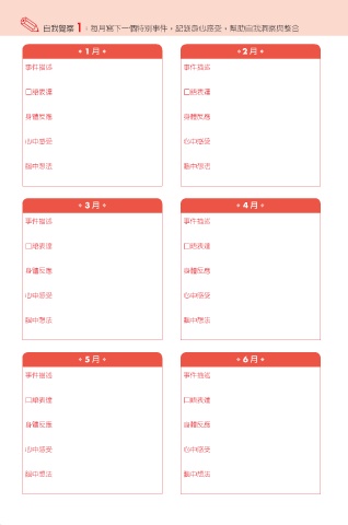. ІҢᙂ࿀ 1:每月寫下一個特別事件,記錄身心感受,幫助自我洞察與整合