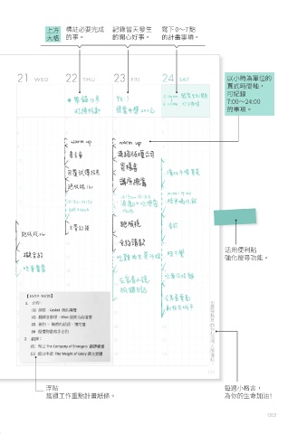 上方 標註必要完成 記錄當天發生 寫下0~7點