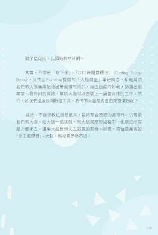 精華、最有用的資訊,幫助大腦可以做更上一層整合性的工作。然