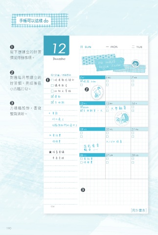 寫下想建立的好習 12 ˚ SUN ɓ MON ɚ TUE 1 ˍɖ 2 ˍɞ 3 ˍɘ 4 ɤɓ˜