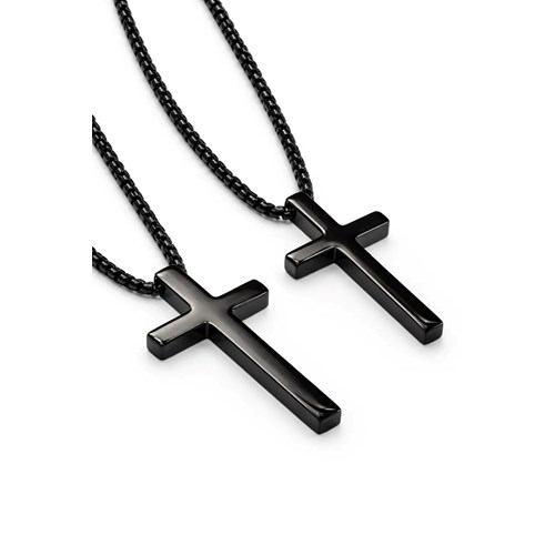 項鍊/3107/撒母耳鈦鋼個性項鍊-標準十字/方珠鏈(黑色)