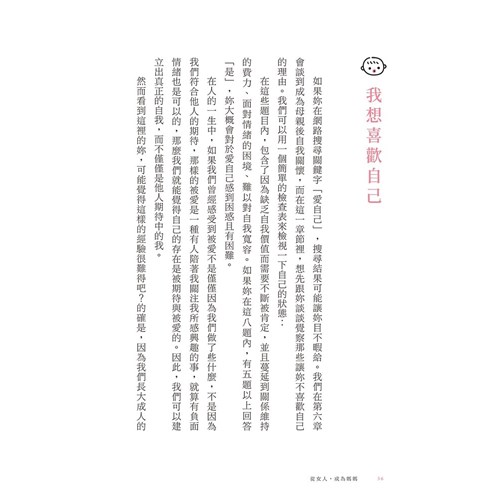 「我們從來沒有準備好任何事,都是在人生的路上邊走邊學。」是專業心理師,是妻子,也是媽媽,作者用這本書讓妳了解不同時期的自己,接受任何樣貌的自己。——譚舜仁,生殖醫學科醫師