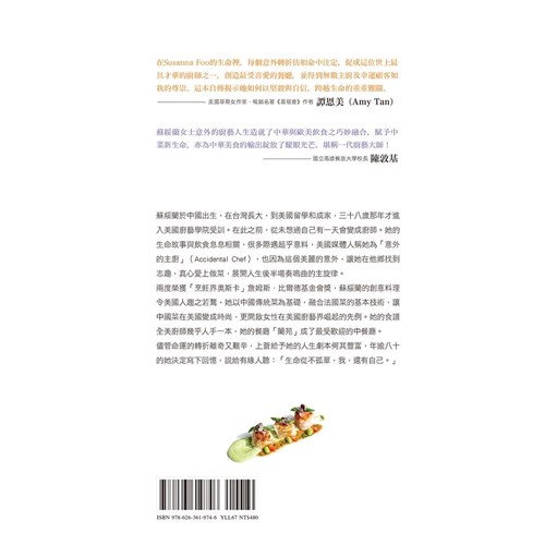 在Susanna Foo的生命裡,每個意外轉折彷如命中注定,促成這位世上最具才華的廚師之一,創造最受喜愛的餐廳,並得到無數主廚及幸運顧客如我的尊崇。這本自傳揭示她如何以堅毅與自信,跨越生命的重重難關。