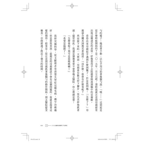 ✽「從腦科學家的立場來看失智症者的問題行動,並從女兒的身分來觀看母親的改變,裡面翻轉了很多我們對失智者的理解……這正是本書價值的真正所在。」