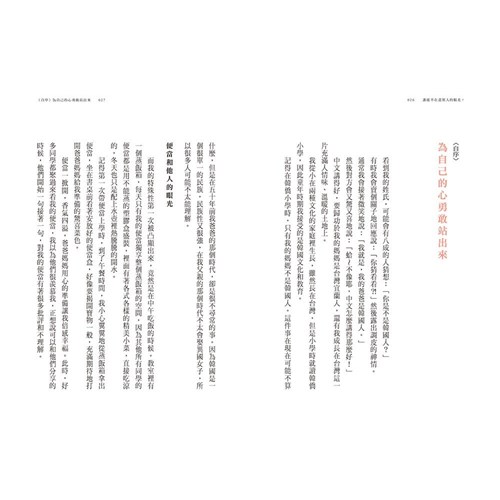 小時候的我就可以分辨得出來,自己的心和別人的眼光是不一樣的。別人對我父母結婚的貶低、對我母親的排外,是因為他們並不認識我的父母,而我知道我的爸爸媽媽是善良的人。童年經驗讓我有深深的感受: