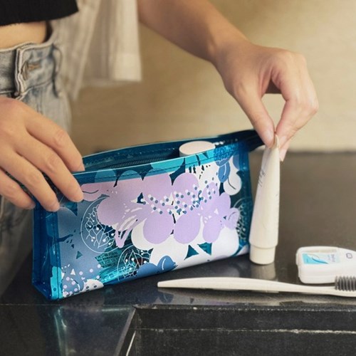 輕盈的透明PVC材質,搭配滿版蕨類印花與實用拉鍊設計,不僅防水耐用,還能輕鬆收納洗漱用品、化妝品等日常隨身物品,讓旅行以及日常生活更加整潔有序,蕨對好用又好「袋」著走。