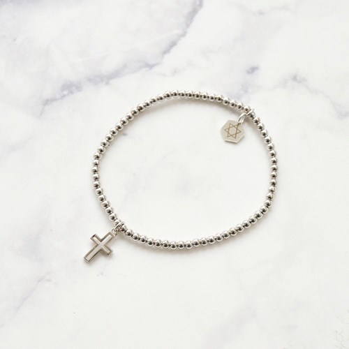 手環/H0702-SI-002/手環-獨一無二(925純銀鍍18K金/細串珠十字架手環M)