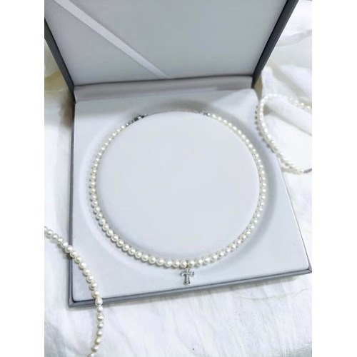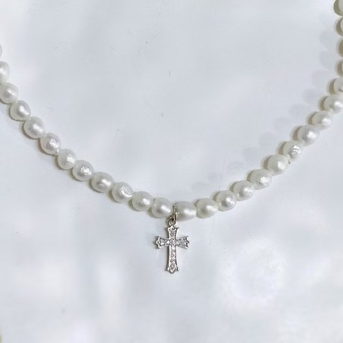 項鍊/3076/淡水珍珠十字架鎖骨項鍊(白金)