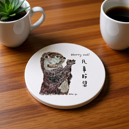 杯墊/3110/陶瓷杯墊-worry not海獺
