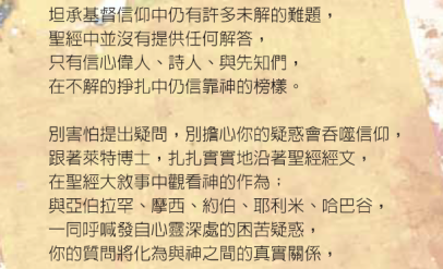 聖經是信仰的根據與權威,所以聖經的無誤至關緊要。然而為什麼舊約提及猶太人歸回的祭司人數,在歷代志和在尼希米記會不一樣?四福音對同一事件的記載也不一樣?本書從聖經無誤的觀點切入,一次解通平行經文「不一致」的問題。