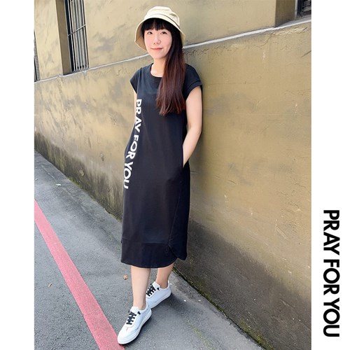 洋裝/C0479-PR-L/短袖立體感洋裝(PRAY FOR YOU)-L