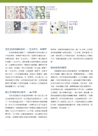 用者從文字中得到助益。而「新標竿」在生產之初,目 週曆手冊」系列正是這宣言的體現:以文字編輯、美術