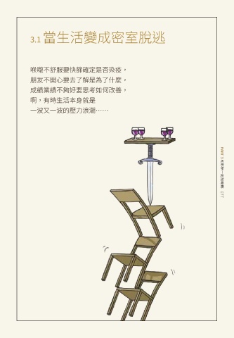 3.1當生活變成密室脫逃 喉嚨不舒服要快篩確定是否染疫, 朋友不開心要去了解是為了什麼, 成績業績不夠好要思考如何改善, 啊,有時生活本身就是 一波又一波的壓力浪潮…… PART 3 和耶穌一起放輕鬆 077