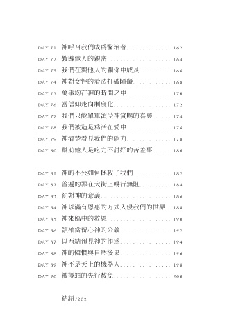 DAY 65 神造我們是為群體 . . . . . . . . . . . . . . . . . . 150 DAY 85 神來臨中的救恩 . . . . . . . . . . . . . . . . . . . . 190