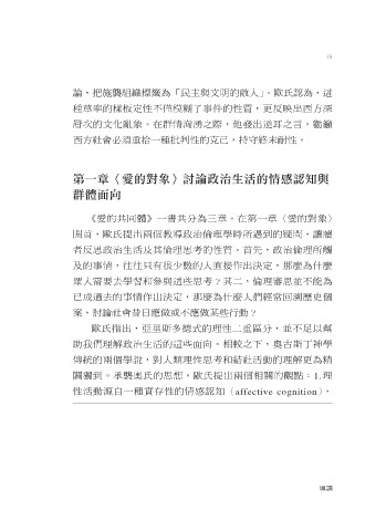 第一章〈愛的對象〉討論政治生活的情感認知與