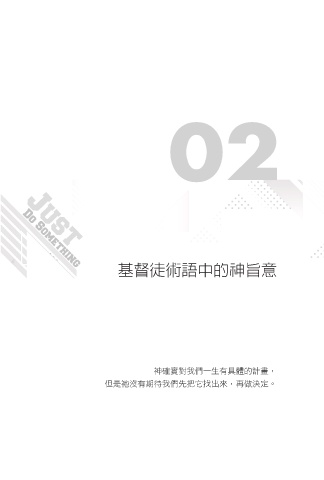 02 02 ਿຖࢯஔႧʕ ٙग़ϙจ 基督徒術語中的神旨意 神確實對我們一生有具體的計畫, 但是祂沒有期待我們先把它找出來,再做決定。 2024/5/28 下午6:10 章名頁.indd 2ࣧ " ग़ਧl㹽ՑֵࠅҢਂʡჿ 1 :"@ ࣧQS JOEE ɨʹ