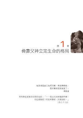 1第 章 倚靠父神立定生命的格局 先想清楚自己為何而戰,再規畫戰略, 至於戰術就更後面了。 ─ 耶和華從旋風中回答約伯說:「……我立大地根基的時候, 你在哪裡呢?你若有聰明,只管說吧。」 2