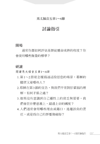 ৵˄၅ࠪʞ1ä6ື 討論指引 開場 ஷ੬ЫேνО൙ПਿຖࢯᜳնϓᆞٙܓkЫ ึԴ͜ࡳԬፅඎٙᅺk 研讀 ቡᛘ৵˄၅ࠪʞ1ä6ື 1. ୋ 1ä2 ື݊ܣᅵࠑவݬڦࢹٙఙ౻dߚጓٙ ᛓɦ݊ࡳԬɛk 2.ߚጓίୋ3ືٙ܁ѓdၾҢࡁ̻੬࿁ႆ၅ٙଣ ༆dϞОͧʘஈk 3. ν؈ӚϞจᗆՑІʉᜳɪٙம˶ၾცࠅdҢ ࡁึίʡჿจ່ɪd፹ཀɪٙܓk 4. ɛࡁஷ੬ึ͜ࡳԬଣ͟אᔟɹdᒒ༈ࠋٙப dא݊މІʉٙໆᅊෆ೨ࢾk ৵˄၅ࠪʞ1ä6ືীሞܸˏ 037