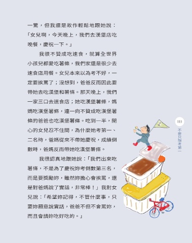 數時,爸媽反而帶她吃漢堡薯條。