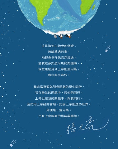 這是造物主給我的保證: 無論遭遇何事, 祂都會保守我安然渡過。 當我愈多知道河馬的知識時, 就愈能感受到上帝創造河馬, 實在無比奇妙。 我非常喜歡與問我問題的學生同行, 我在學生的問題中,與他們同行, 上帝也在我的問題中,與我同行。 我們用上帝給的智慧,討論上帝創造的世界。 即使是一隻河馬, 也有上帝無窮的恩典與憐恤。 " ʫ˖ JOEE ɨʹ