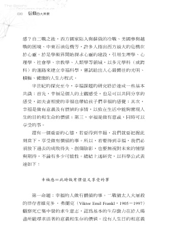 生的目的和生命的價值;第三,幸福是做有意義,同時可以