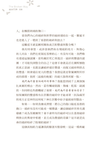 當我們內心的破碎與世界的破碎連結在一起,難道不 這條道路是最真實的人生嗎?或說人生真的要朝這條